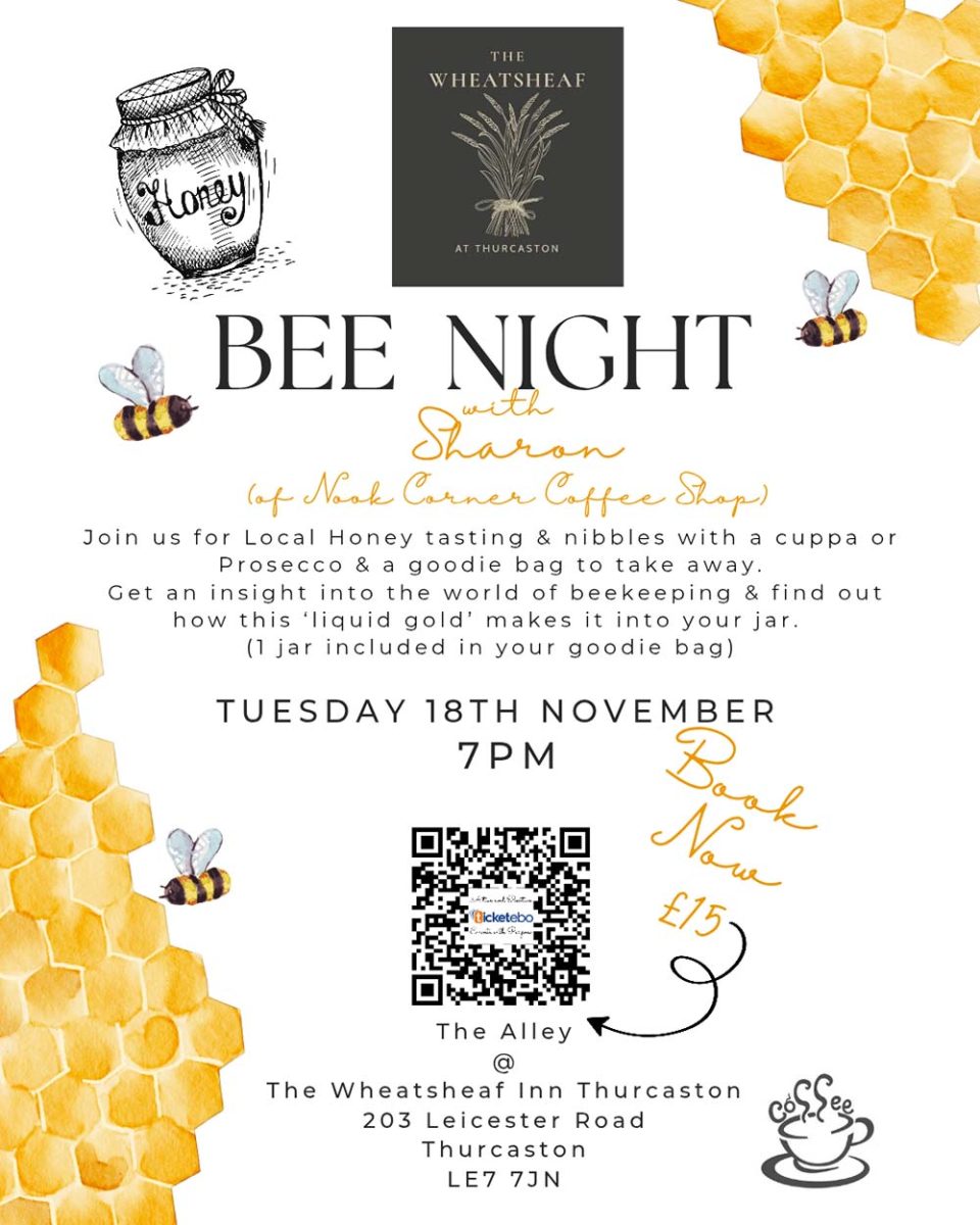 Bee Night – Honey Tasting, Tuesday 18th November at 7pm