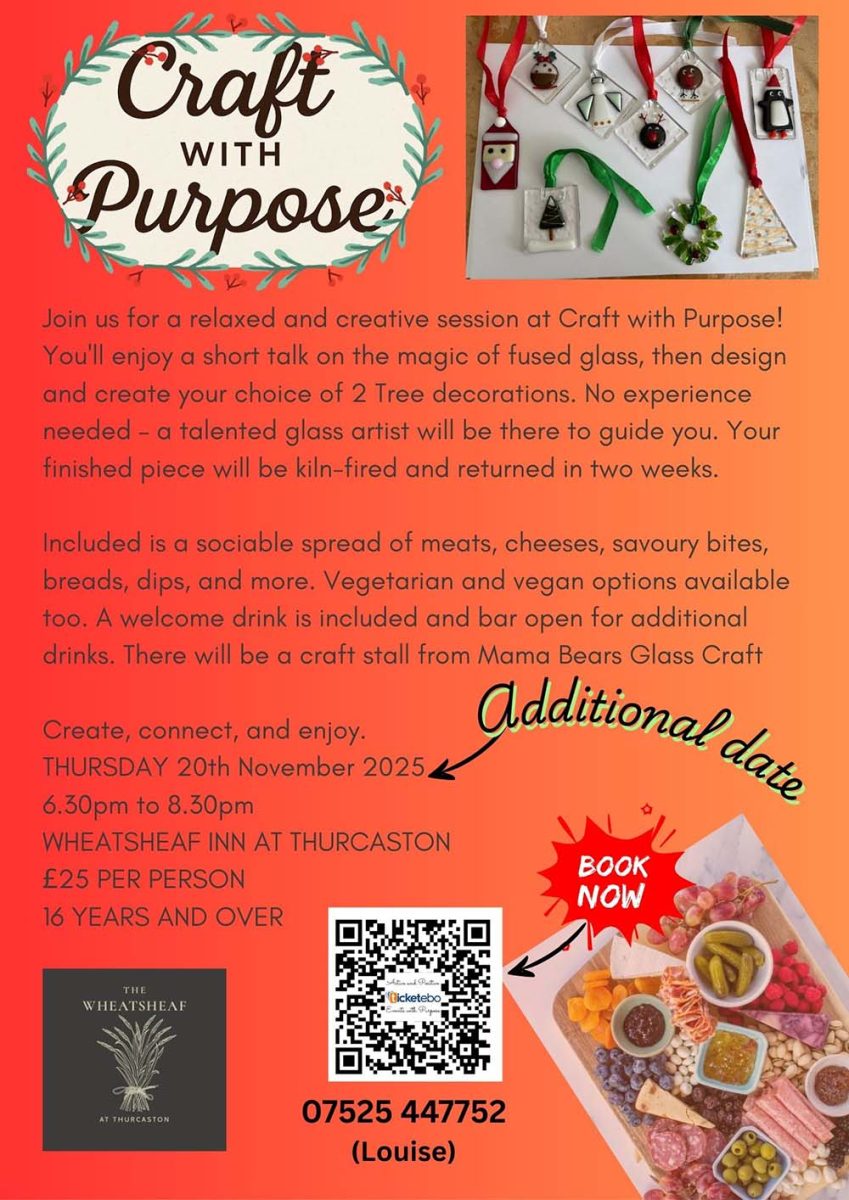 Join us for a relaxed and creative session at Craft with Purpose! You’ll enjoy a short talk on the magic of fused glass, then design and create your choice of 2 tree decorations. No experience needed – a talented glass artist will be there to guide you. Your finished piece will be kiln-fired and returned in two weeks. Included is […]